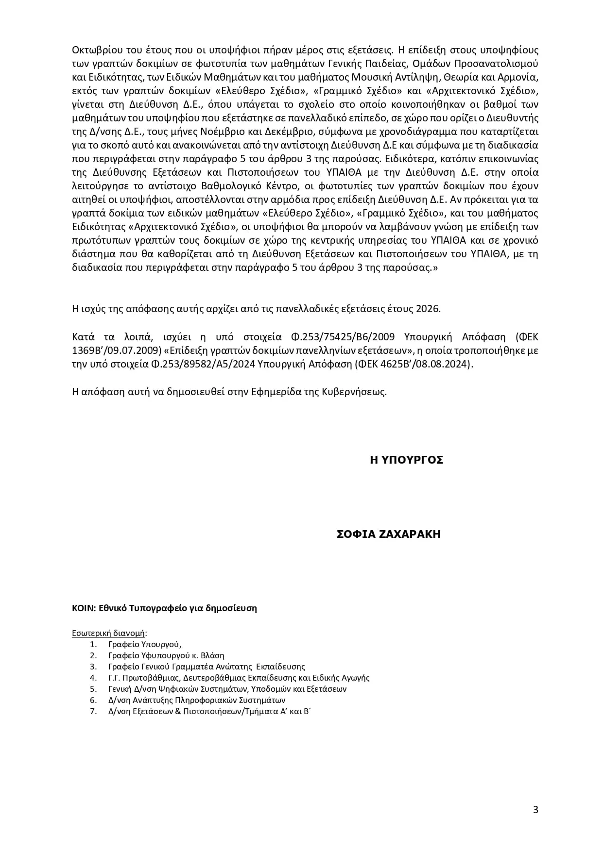 Κατά τα λοιπά, εξακολουθεί να ισχύει η βασική υπουργική απόφαση του 2009 για την επίδειξη γραπτών δοκιμίων, όπως αυτή έχει ήδη τροποποιηθεί με μεταγενέστερη απόφαση του 2024.