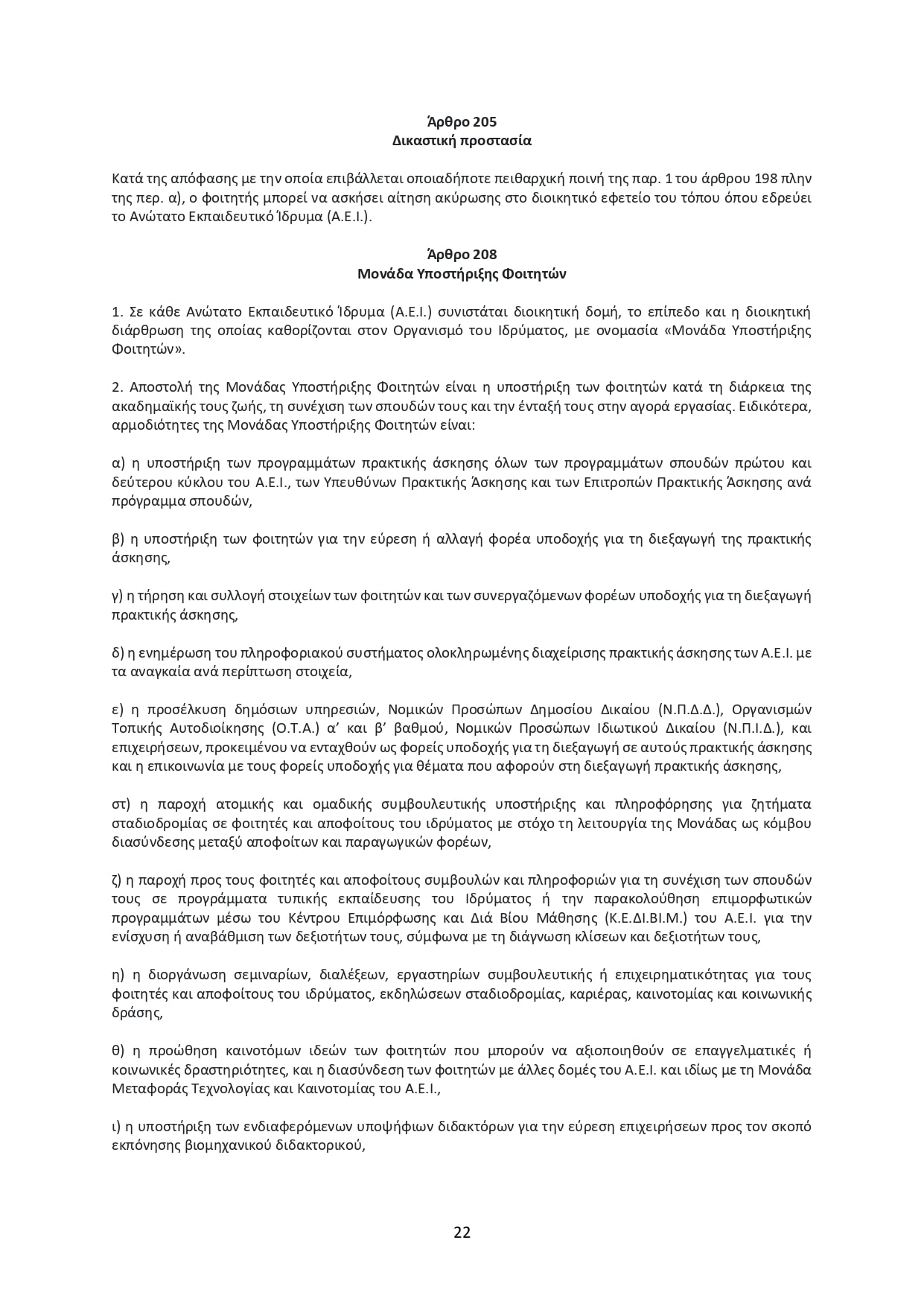 - τις διατάξεις του νόμου 4957/2022 «Νέοι Ορίζοντες στα Ανώτατα Εκπαιδευτικά Ιδρύματα: Ενίσχυση της ποιότητας, της λειτουργικότητας και της σύνδεσης των Α.Ε.Ι. με την κοινωνία και λοιπές διατάξεις» (ΦΕΚ Α’ 141), όπως ισχύουν,