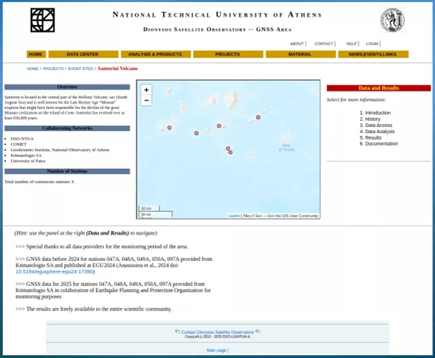 Με εμπειρία άνω των 15 ετών στη διαχείριση μόνιμων σταθμών GNSS, το ΕΜΠ όχι μόνο διαθέτει το δικό του δίκτυο σταθμών στην περιοχή, αλλά και συνεργάζεται με σημαντικούς φορείς, όπως τον Οργανισμό Αντισεισμικού Σχεδιασμού και Προστασίας (ΟΑΣΠ), το Ελληνικό Κτηματολόγιο ΑΕ, το Εθνικό Αστεροσκοπείο Αθηνών (ΕΑΑ), το Εθνικό και Καποδιστριακό Πανεπιστήμιο Αθηνών (ΕΚΠΑ.) Μέσω αυτής της συνεργασίας, πραγματοποιείται προηγμένη επεξεργασία δορυφορικών δεδομένων GNSS, τόσο με ημερήσιες λύσεις όσο και με δεδομένα υψηλής χρονικής ανάλυσης (1Hz), παρέχοντας κρίσιμες πληροφορίες για την εξέλιξη της δραστηριότητας.