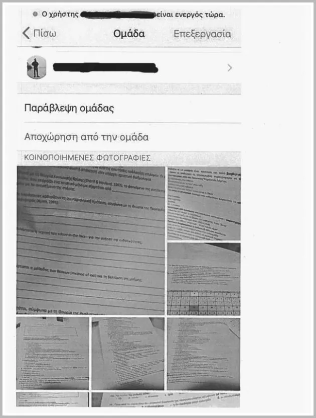 Από τις φωτογραφίες προκύπτει πως στις 30 Ιανουαρίου 2018 ο φοιτητής Π.Π. (στέλεχος της ΔΑΠ) δημιούργησε ένα διαδικτυακό γκρουπ με το όνομα «Ψυχολογία», που ήταν το εξεταζόμενο μάθημα εκείνης της μέρας στο Τμήμα Επικοινωνίας και Μάρκετινγκ.