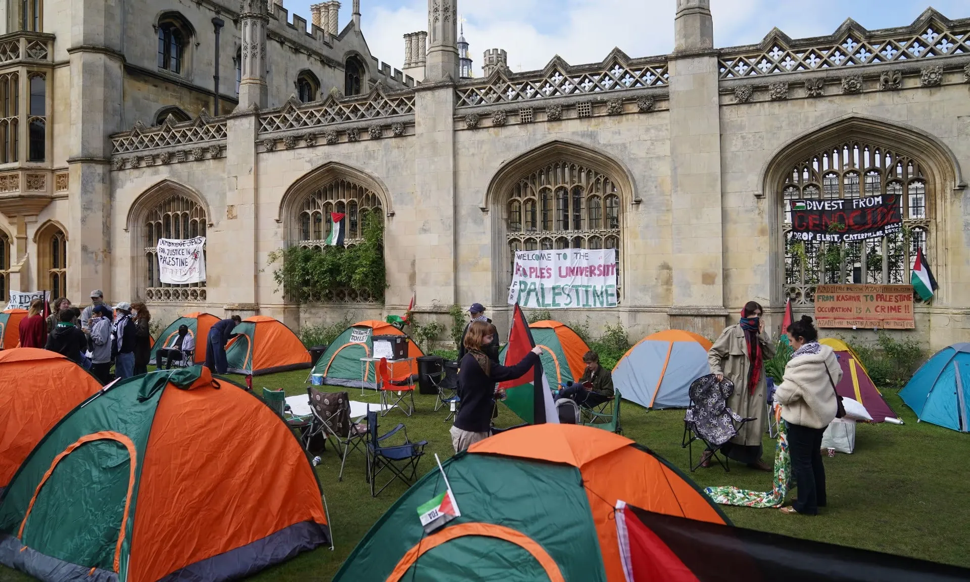 Υπάρχουν περίπου 14 κατασκηνώσεις φοιτητών σε πανεπιστήμια του Ηνωμένου Βασιλείου, μετά από μεγάλες διαμαρτυρίες σε πανεπιστήμια στις ΗΠΑ.