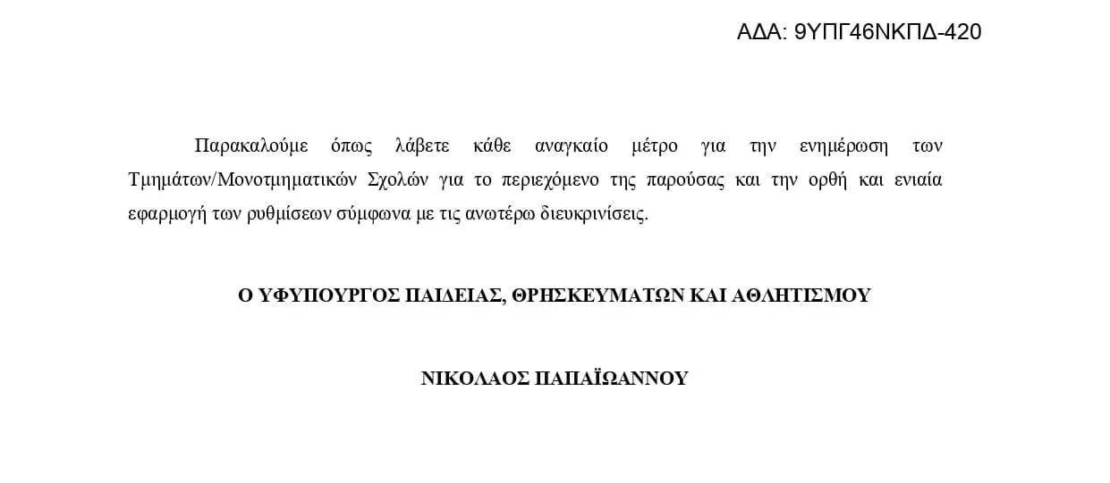 Σύμφωνα με τις διευκρινίσεις του Υπουργείου Παιδείας:
