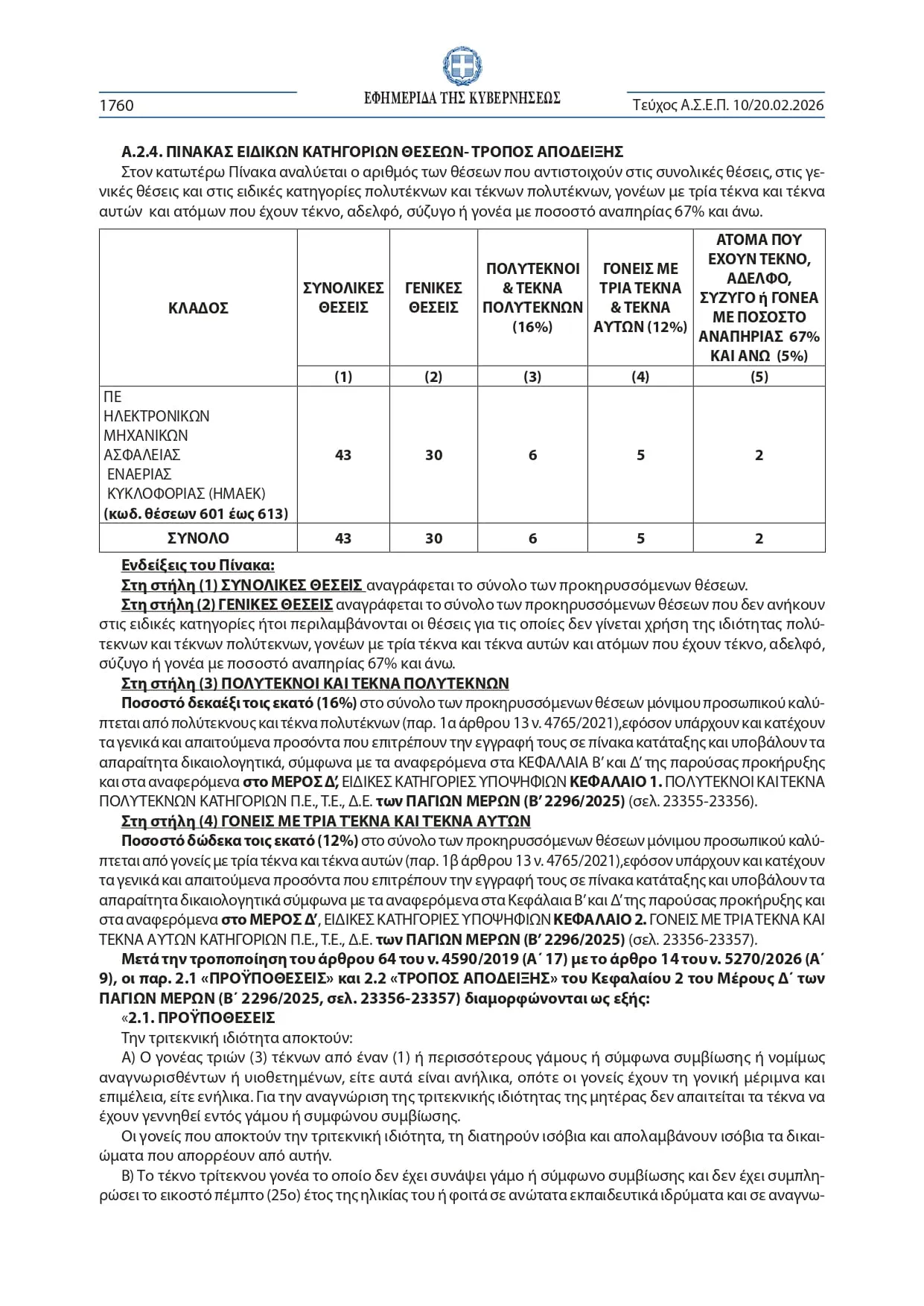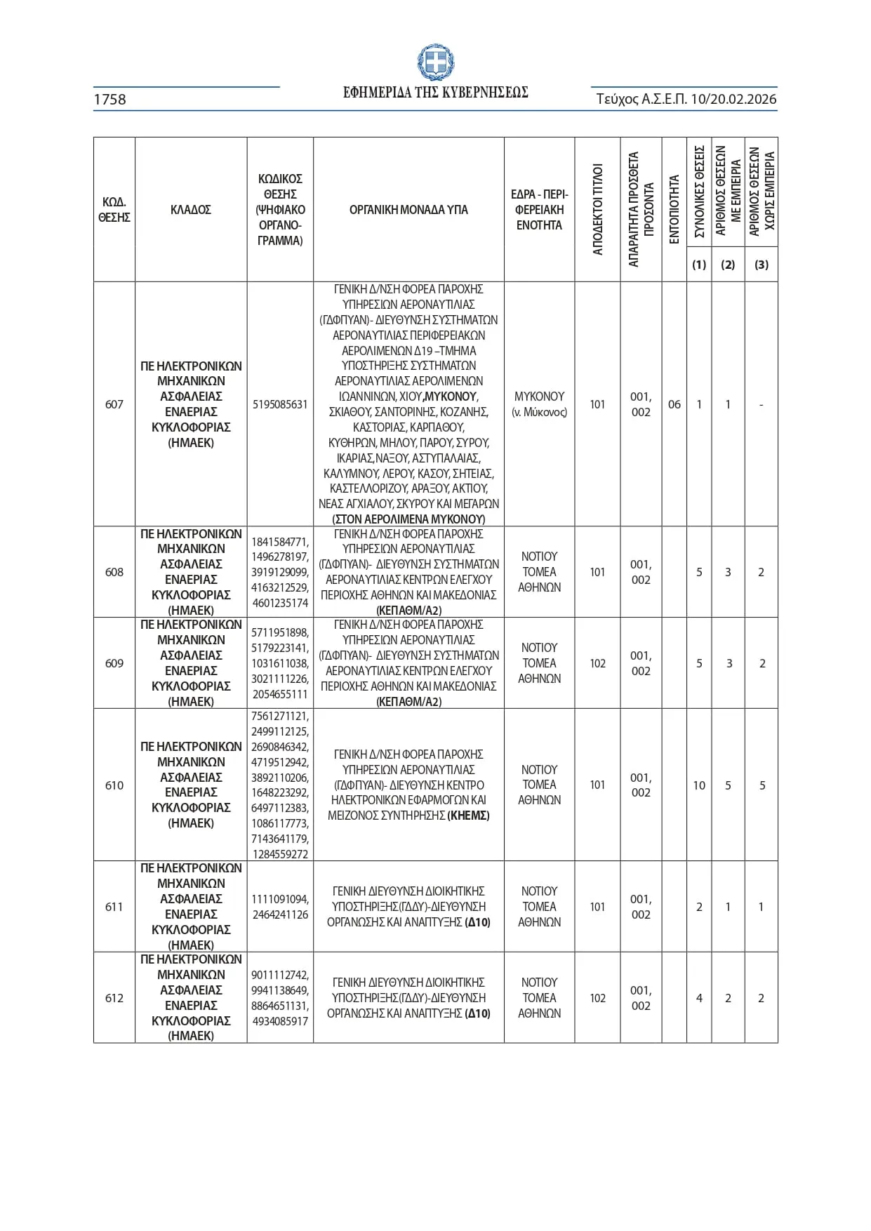 Η προκήρυξη αφορά αποκλειστικά την κατηγορία Πανεπιστημιακής Εκπαίδευσης (ΠΕ) και συγκεκριμένα τον κλάδο ΠΕ Ηλεκτρονικών Μηχανικών Ασφάλειας Εναέριας Κυκλοφορίας (ΗΜΑΕΚ).