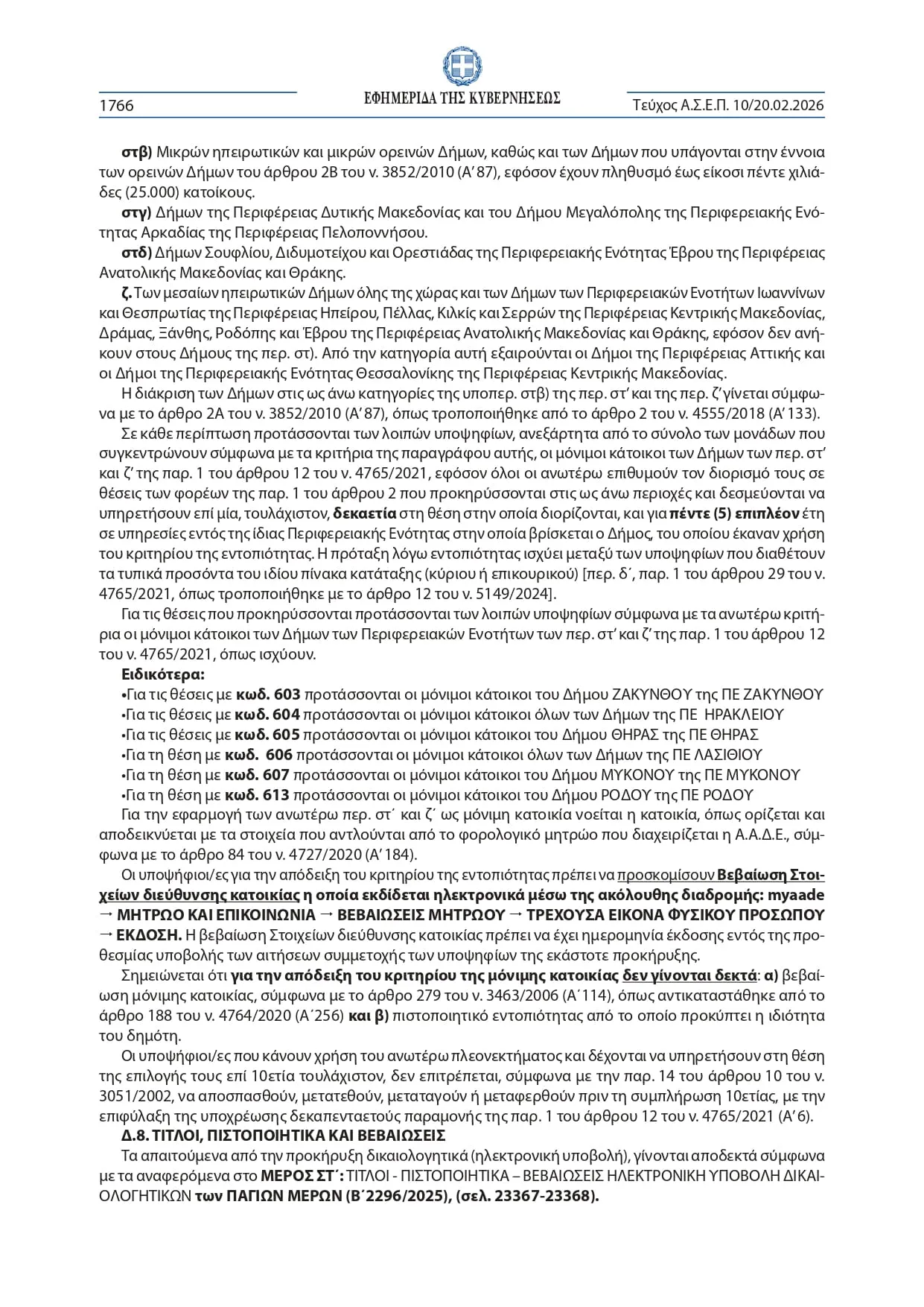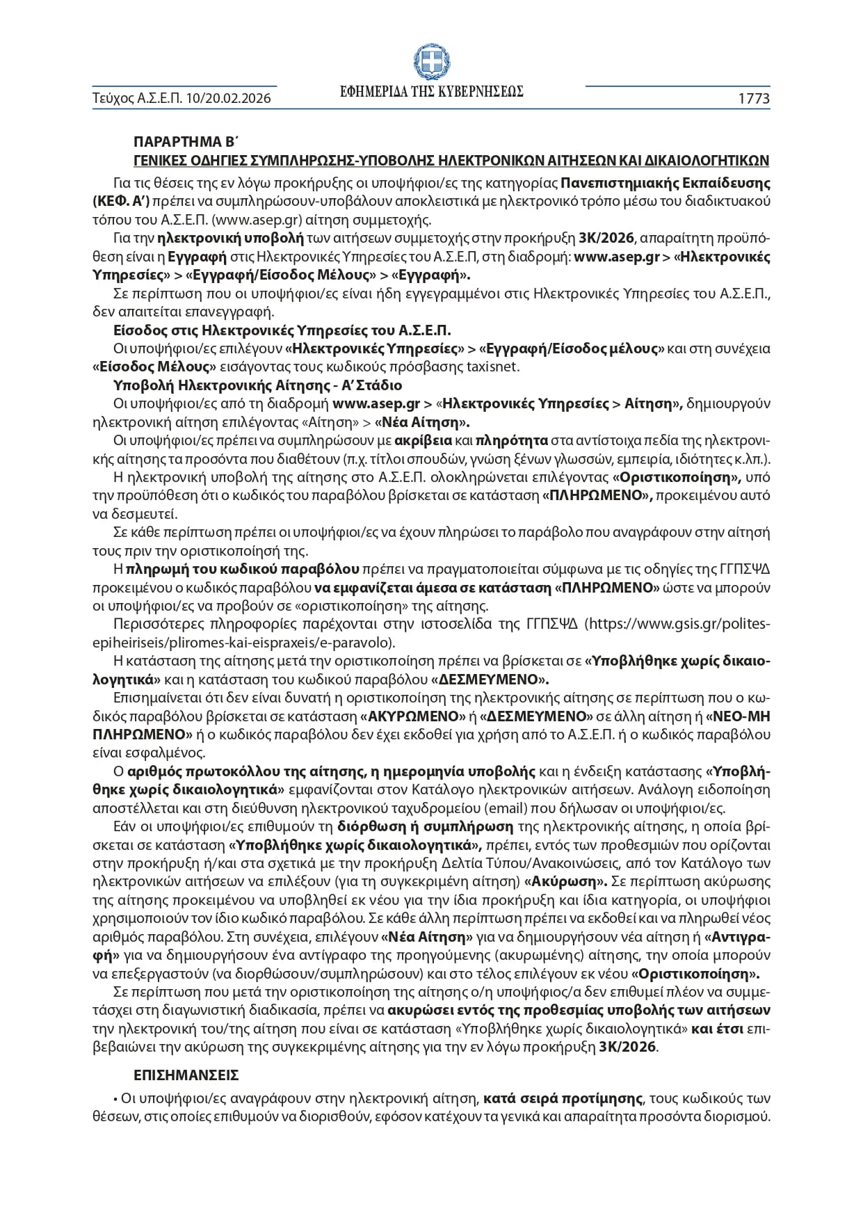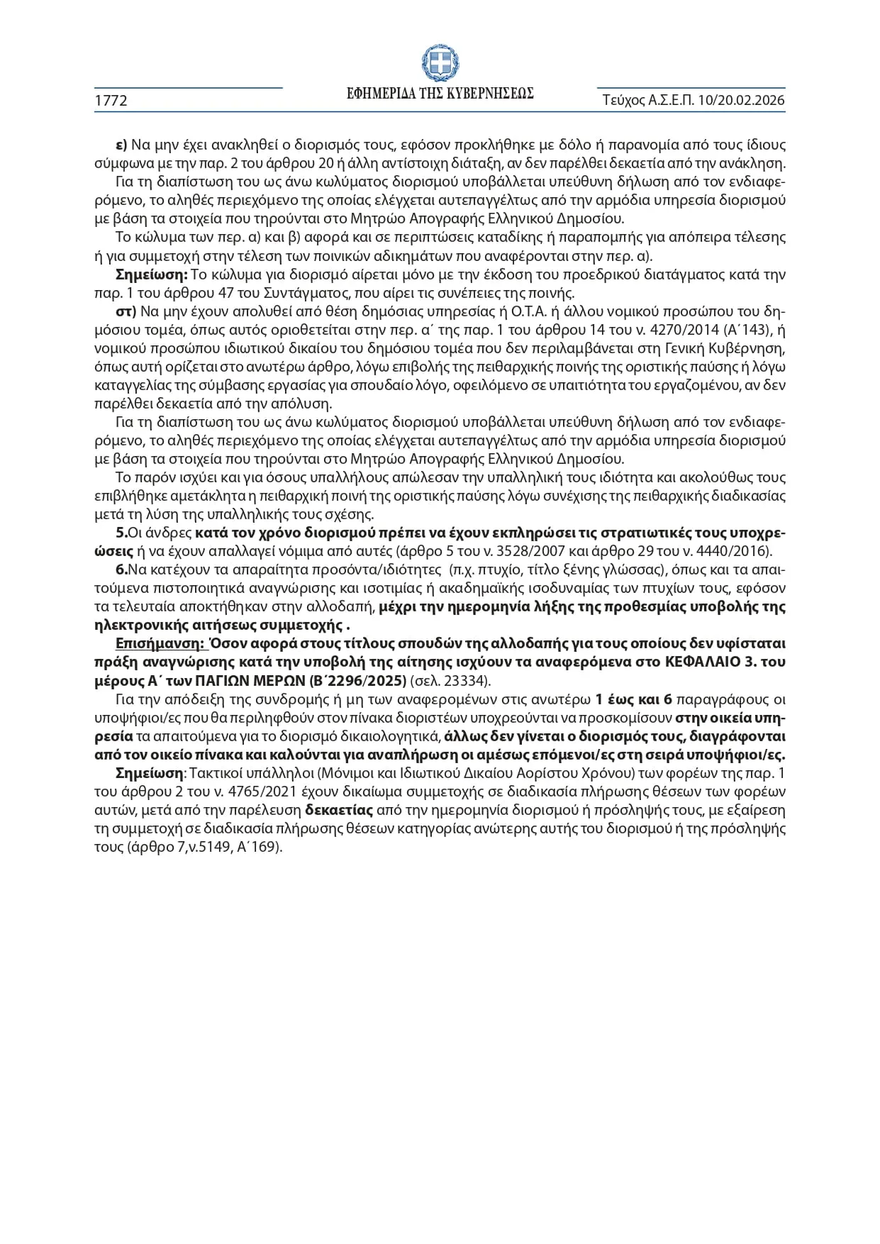 Οι υποψήφιοι καλούνται να μελετήσουν προσεκτικά το αναλυτικό ΦΕΚ της προκήρυξης, ώστε να διασφαλίσουν ότι πληρούν τα απαιτούμενα προσόντα και να προχωρήσουν έγκαιρα στην υποβολή της αίτησής τους.