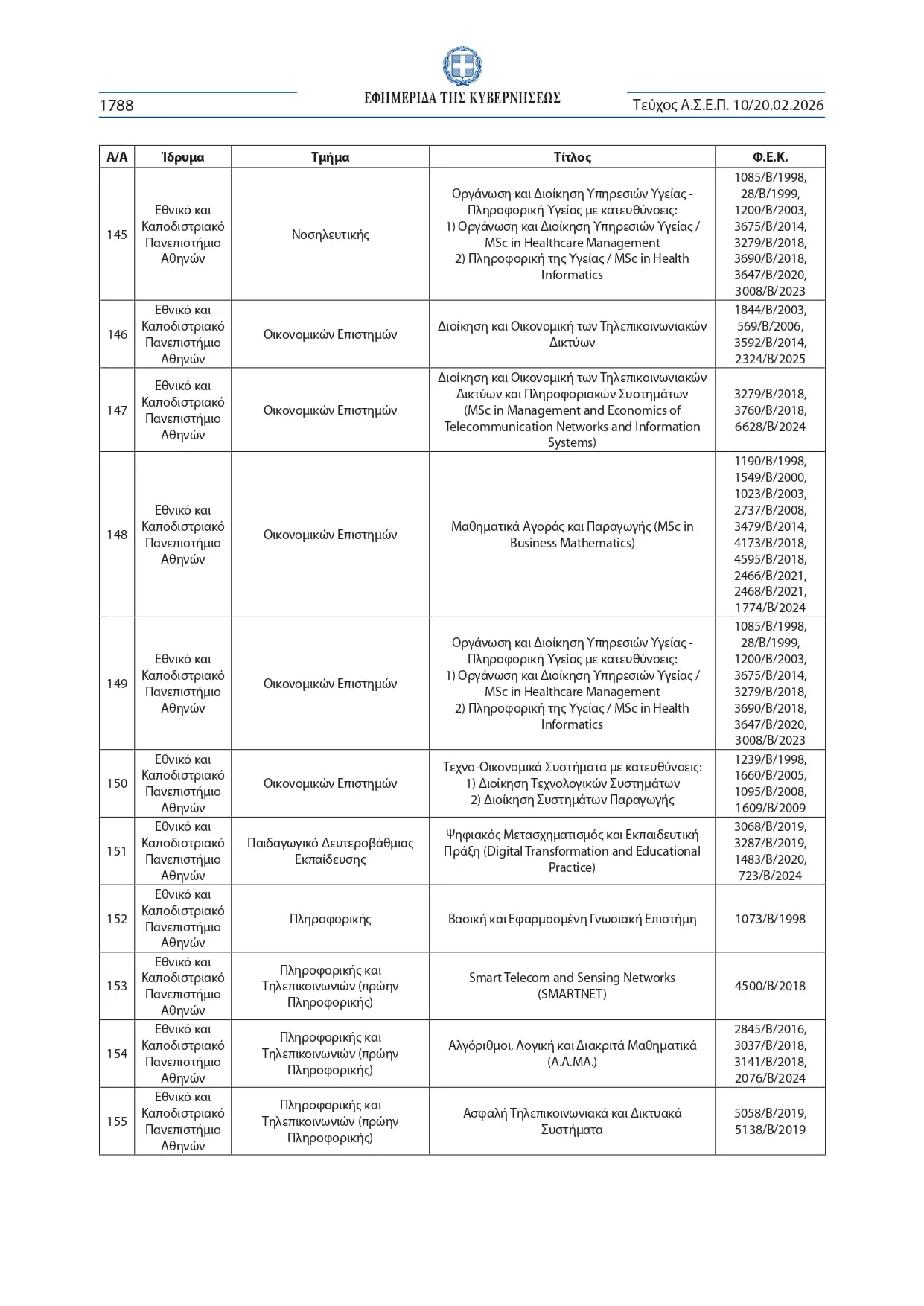 - Έναρξη: Δευτέρα, 9 Μαρτίου 2026 και ώρα 08:00