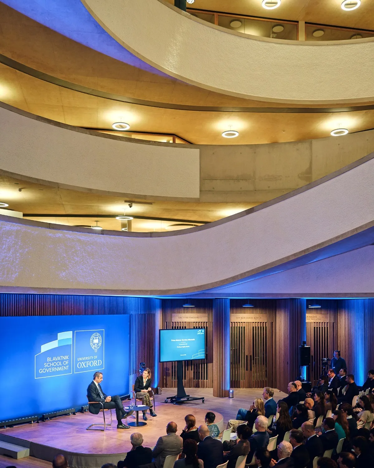 Λίγο μετά την ομιλία του στο Λονδίνο, στο συνέδριο της Morgan Stanley, ο κ. Μητσοτάκης επισκέφθηκε το Blavatnik School of Governement του Πανεπιστημίου της Οξφόρδης και μετείχε σε συζήτηση με την κοσμήτορα της σχολής και καθηγήτρια Παγκόσμιας Διακυβέρνησης στο Πανεπιστήμιο της Οξφόρδης, Ngaire Woods.