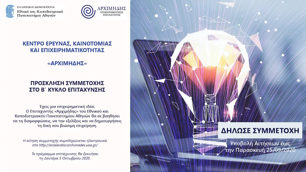 Είσαι μέλος της πανεπιστημιακής κοινότητας του ΕΚΠΑ; Δήλωσε συμμετοχή στο Β΄ Κύκλο Επιτάχυνσης του Κέντρου Αρχιμήδης