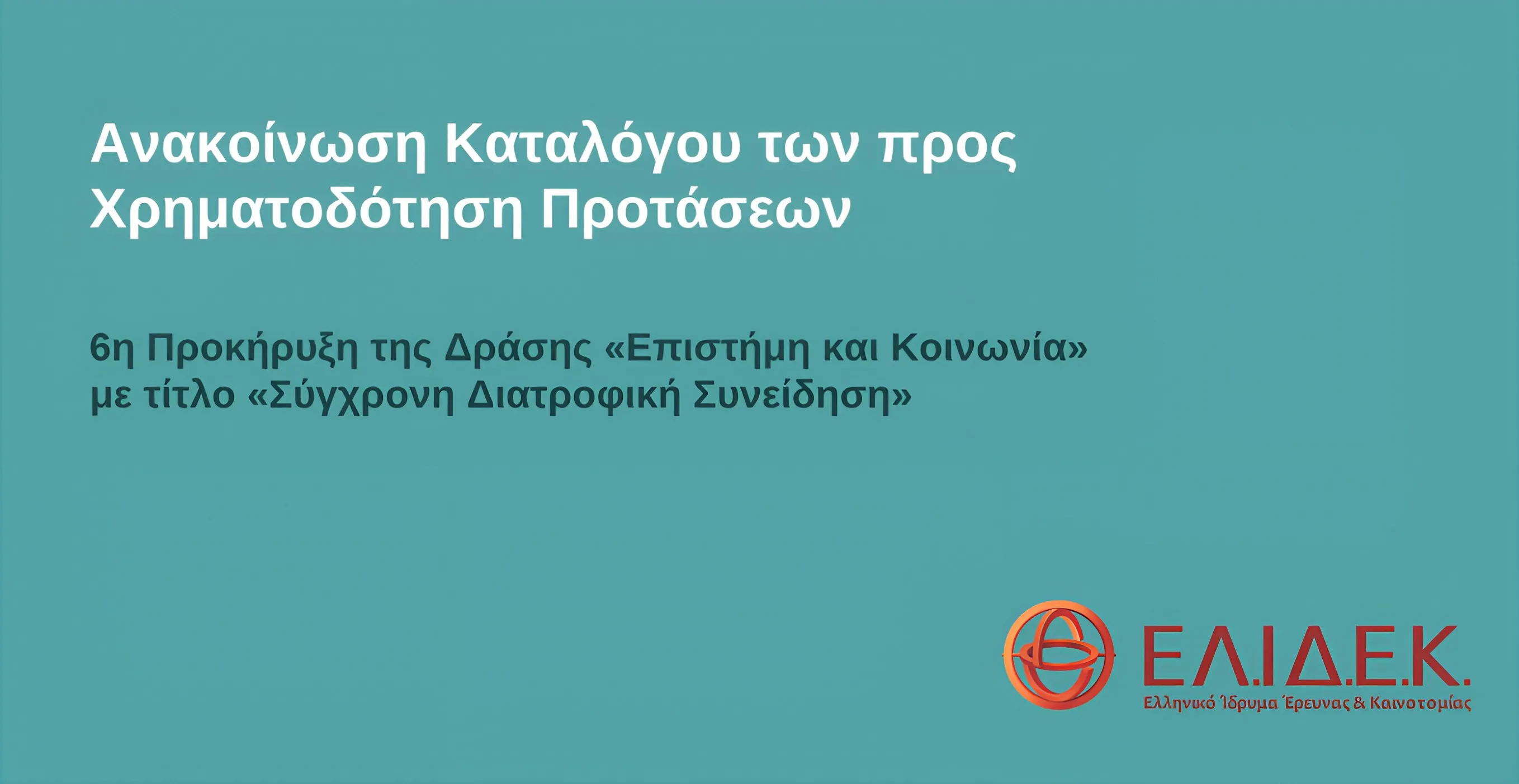 Οι Ερευνητές για τη "Σύγχρονη Διατροφική Συνείδηση" / Αυτές είναι οι 10 προτάσεις που χρηματοδοτεί το ΕΛΙΔΕΚ